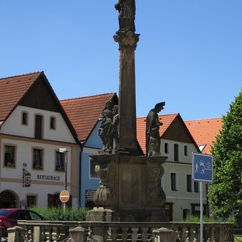 John of Nepomuk column in Planá, statue in Planá u Mariánských Lázní, Czech Republic