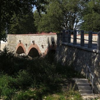 Inundační cihelný most v Protivci, tříobloukový most navazující na most přes Zlatý potok