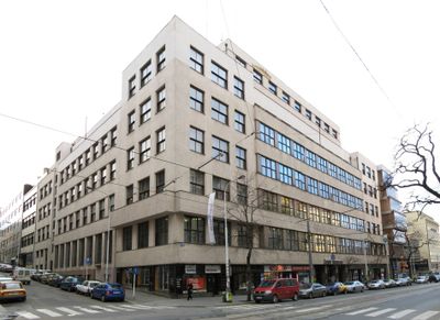 The headquarters, constructed in 1933, became a central point during the 1945 Prague Uprising when civilians defended it against Nazi forces.