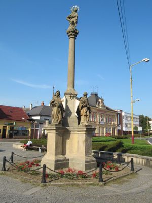 Maria column in Vizovice, sloup se sousoším na Masarykově náměstí ve Vizovicích
