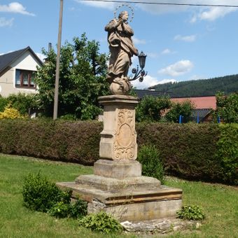 Sousoší svatého Jana Nepomuckého s andílky v Rudě nad Moravou před zámkem