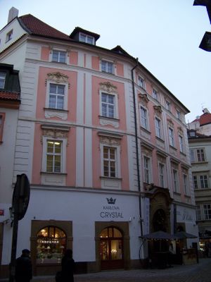 The palác U Kočků stands between Old Town Square and Charles Bridge, featuring multiple architectural elements from different periods and serving as a hotel.