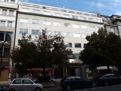 Located between Celetná street and Na Příkopě, the building connects these major thoroughfares through the Broadway Passage for convenient access.