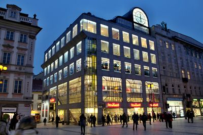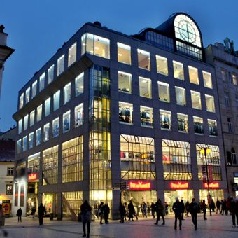 The building contains direct access to Můstek metro station and includes retail spaces on the lower floors following a 2003 renovation by architect Alena Šrámková.