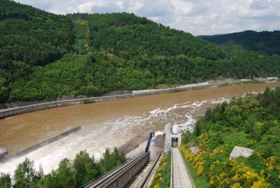 The Orlík boat lift traverses an elevation of 70 meters using a 277-meter-long rail track system across the Vltava River.