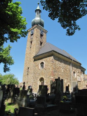 Reliéfy v hřbitovní zdi u kostela v Ratajích