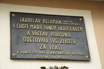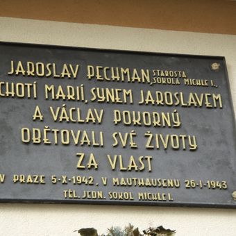 Pamětní deska Jaroslava Pechmana, Marie Pechmanové, Jaroslava Pechmana mladšího a Václava Pokorného, pamětní deska v Praze-Michli