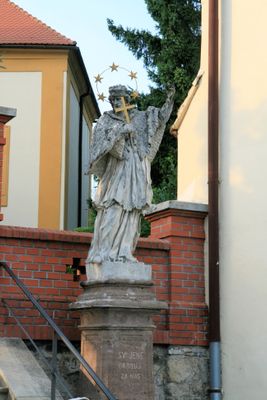 Statue of John of Nepomuk in front of the church, statue in Šlapanice, Czech Republic