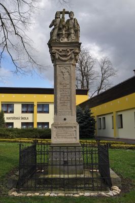 Holy Trinity column, sloup před mateřskou školou a zdravotním střediskem v Radiměři