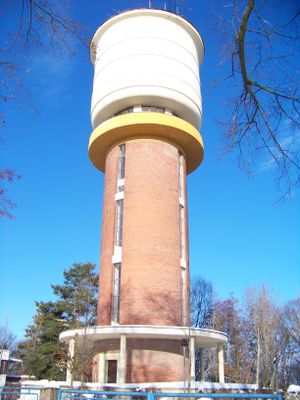 Construction of the water tower began on April 28, 1936, and the facility commenced operations on January 1, 1937, with a total construction cost of 3,387,000 crowns.