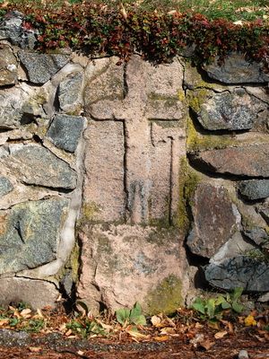 Boží muka s opěrnou zídkou se smírčím kamenem