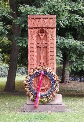 The monument incorporates a khachkar, a traditional Armenian cross-stone that represents the artistic and religious traditions of Armenian heritage.