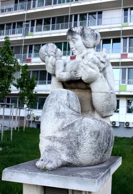 The stone sculpture emerged in 1974 as part of the public art collection, reflecting the changing perspectives on family representation in Czech society.