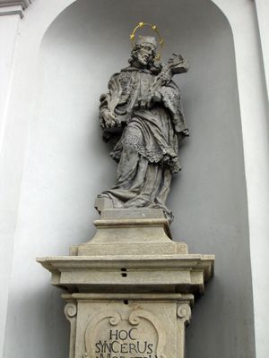 Statue of John of Nepomuk in Náměstí Republiky, statue in New Town, Czech Republic