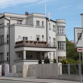 Architect František Janda completed this residential building in 1933, during a period of architectural innovation in Czechoslovakia.