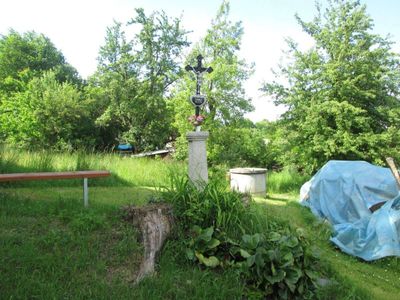Kříž v Milčicích v zahradě