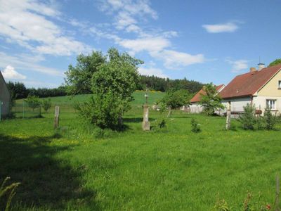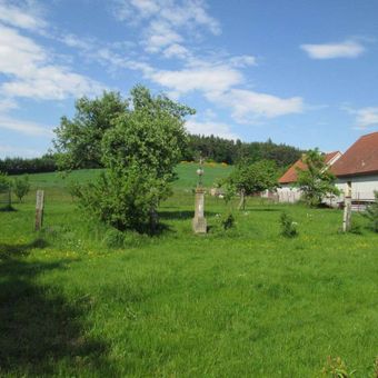 Kříž v Milčicích v zahradě, pamětní kříž v obci Myslív, okres Klatovy