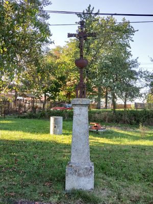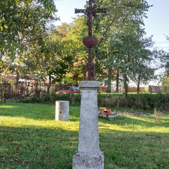 Kříž v plotě ve Věvrově, kříž jihozápadně od čp. 2