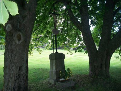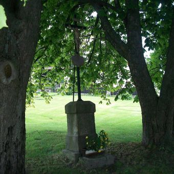 Kříž v Načetíně na návsi, pamětní kříž v obci Hora Svatého Václava, okres Domažlice