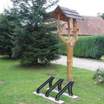 Dřevěná zvonička na návsi v Třebosicích, zvonička v obci Třebosice, okres Pardubice