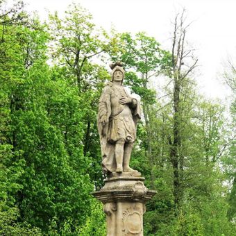 Socha svatého Vojtěcha na barokním mostě poblíž zámku Žďár