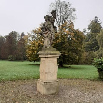 Sochy alegorií Jaro a Podzim v zámeckém parku v Liběchově