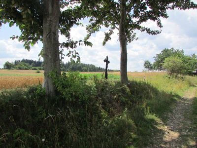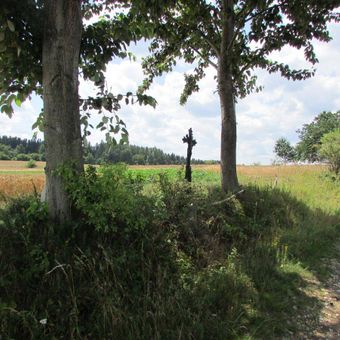Kříž na západním okraji obce Mezná, pamětní kříž v obci Mezná, okres Pelhřimov
