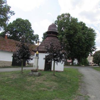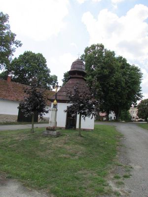Kříž před kaplí v Mezné, pamětní kříž v obci Mezná, okres Pelhřimov