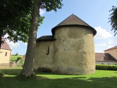Křížový kámen I zazděný do věže kostela ve Stonařově