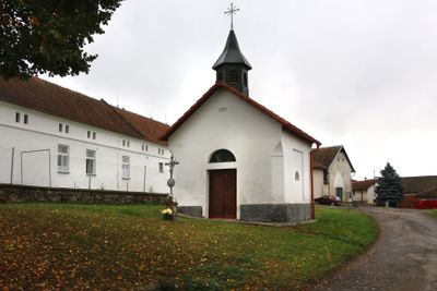 Kříž před kaplí v Chválově, pamětní kříž v obci Olešná, okres Pelhřimov