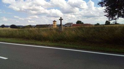 Kříž severně od Roučkovic u silnice, pamětní kříž v obci Pacov, okres Pelhřimov