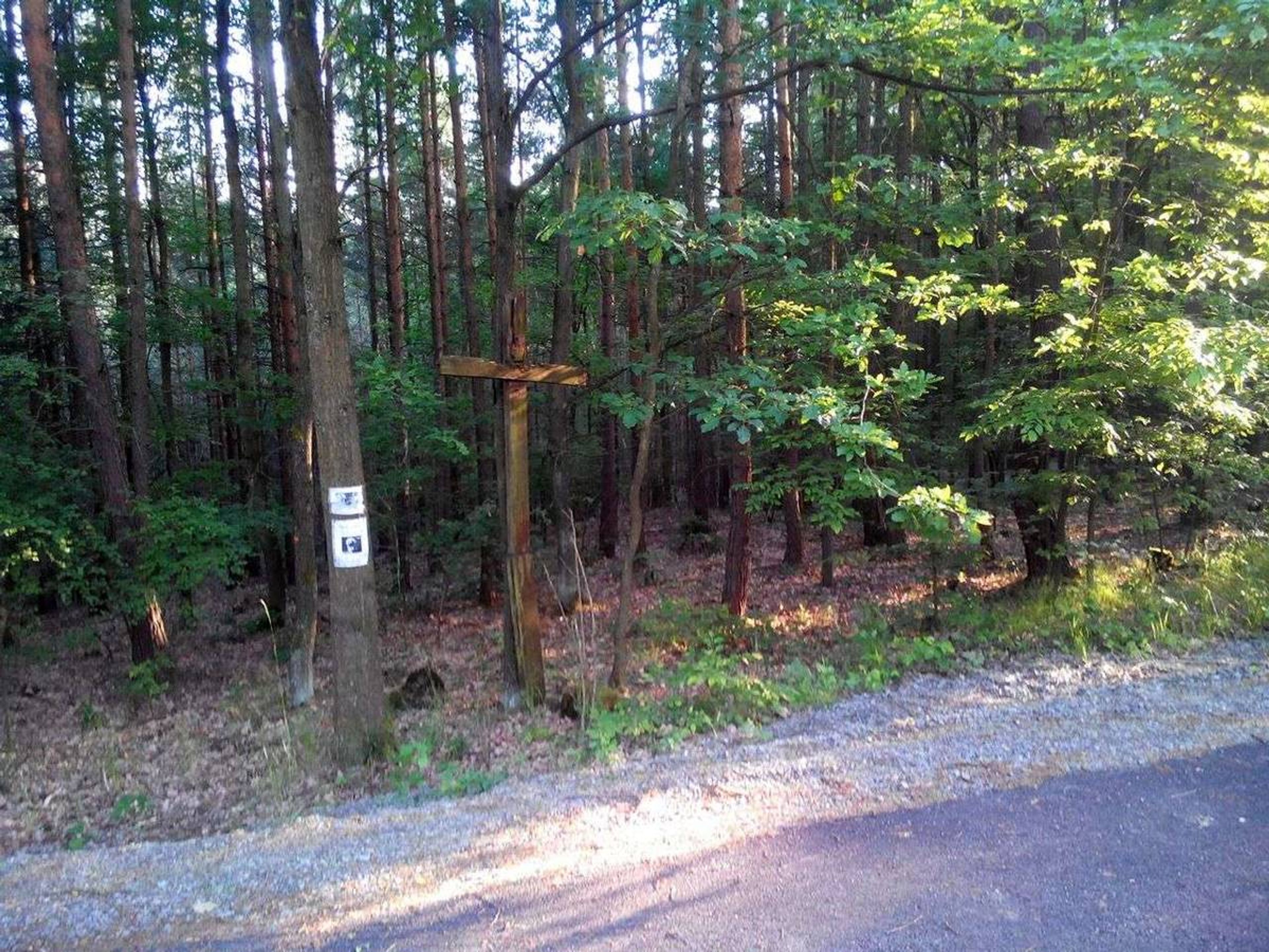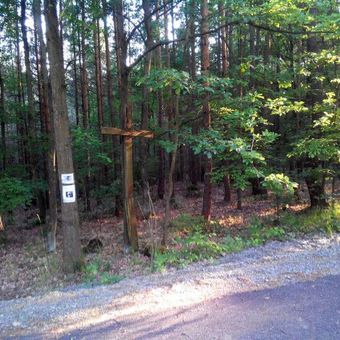Kříž v lese mezi Pičínem a Hlubošem, pamětní kříž v obci Hluboš, okres Příbram