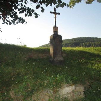 Kříž mezi třemi stromy u polní cesty nad Kondrací