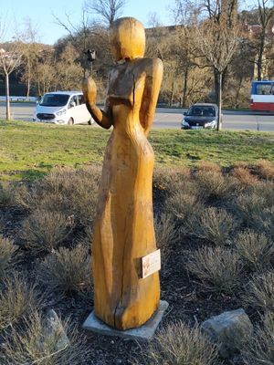 Sculpture before hotel in Týnec nad Sázavou