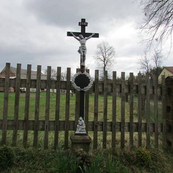 Kříž na jižním okraji Olešné před stoupáním do Pelhřimova
