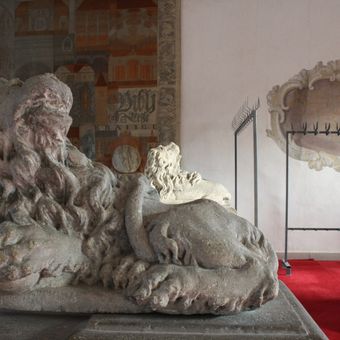 Socha lva v třebíčském zámku, statue in Třebíč, Czech Republic