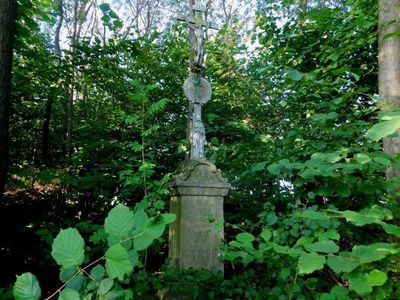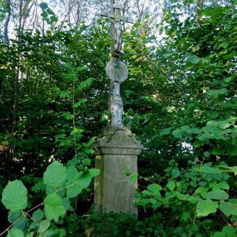 Sousoší Nejsvětější Trojice na zdi hřbitova ve Štokách