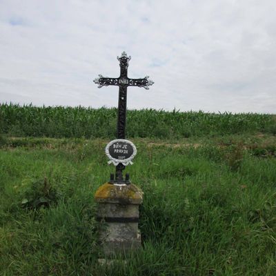 Kříž z litiny uprostřed polí mezí Žirovem a Machkovým Mlýnem