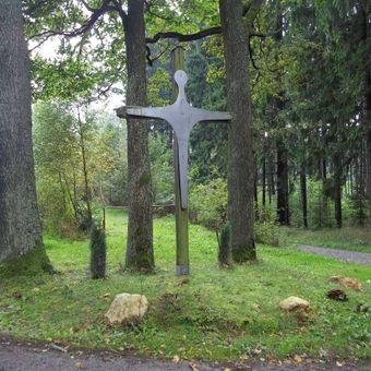 Kříž u rybníka u Sudkova Dolu, pamětní kříž v obci Obrataň, okres Pelhřimov