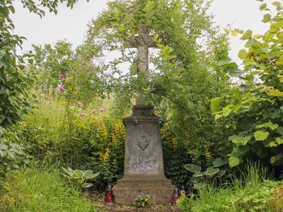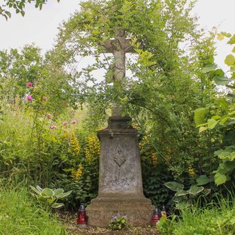 Kříž v Nových Losinách vedle silnice, pamětní kříž v obci Jindřichov, okres Šumperk