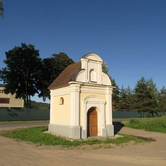 Kaplička Golgota v Moravičanech u vstupu do areálu kostela