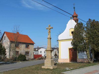 Kříž v Doubravici před kaplí, pamětní kříž v obci Moravičany, okres Šumperk