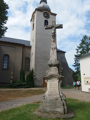 Kříž v Postřelmově u kostela, pamětní kříž v obci Postřelmov, okres Šumperk