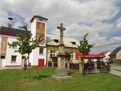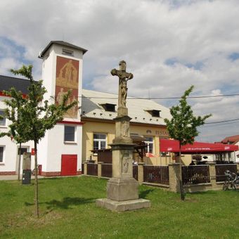 Kříž ve Třech Dvorech před hasičskou zbrojnicí, pamětní kříž v obci Litovel, okres Olomouc