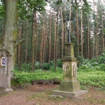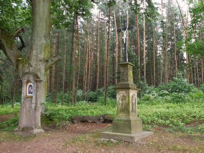 Kříž severně od Bludova v lese, pamětní kříž v obci Bludov, okres Šumperk