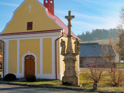 Kříž ve Hvozdečku u kaple na návsi, pamětní kříž v obci Bouzov, okres Olomouc
