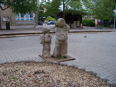 Socha dětí u nákupního centra v Děčíně-Podmoklech, statue in Děčín, Czech Republic