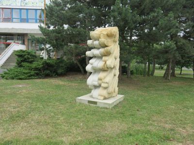 Kamenná plastika v zahradě Aquadromu v Mostě