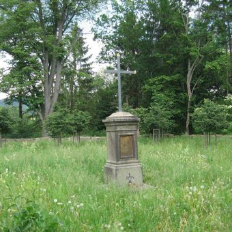Pamětní kříž u hřbitova bývalé obce Fukov