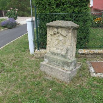 Podstavec ulomeného kříže v Mostecké ulici ve Vtelně, pamětní kříž v obci Most, okres Most